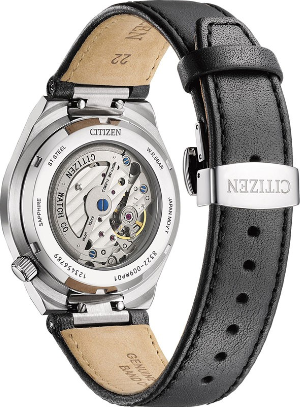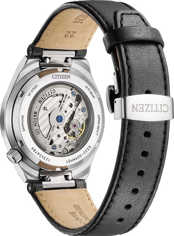 Funkce:Čas, datum, mimostředná sekundová ručka, strojek Japan Citizen Miyota 8322 (21 kamenů), rezerva chodu 60 hodin, polokmity setrvačky 21.600/h (3 Hz) = přesnost chodu (diference) 3 - 5 vteřin denně, automatický nátah (hodinky se natahují pohybem ruky) + ruční nátah (hodinky lze natáhnout/dotáhnout dle potřeby i ručně korunkou), rotor samonátahu disponuje funkcí oboustranného nátahu, náhled na strojek skrz zadní víčko, svítící ručky a indexy
