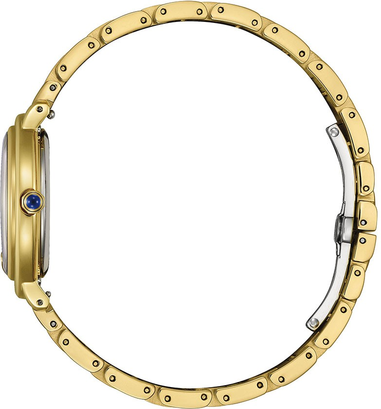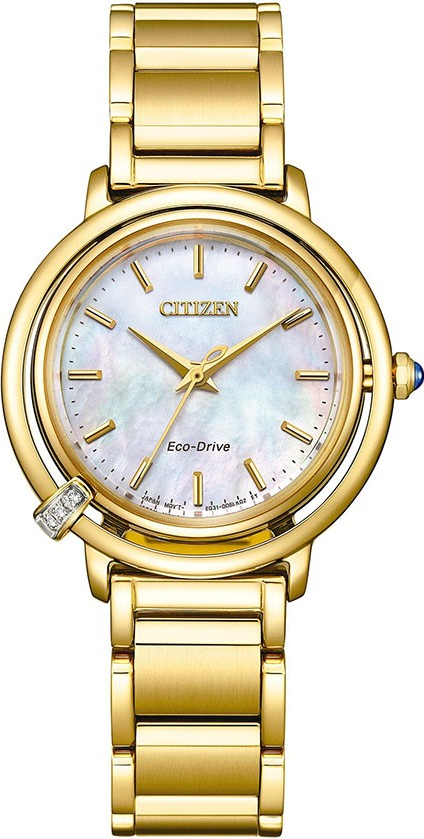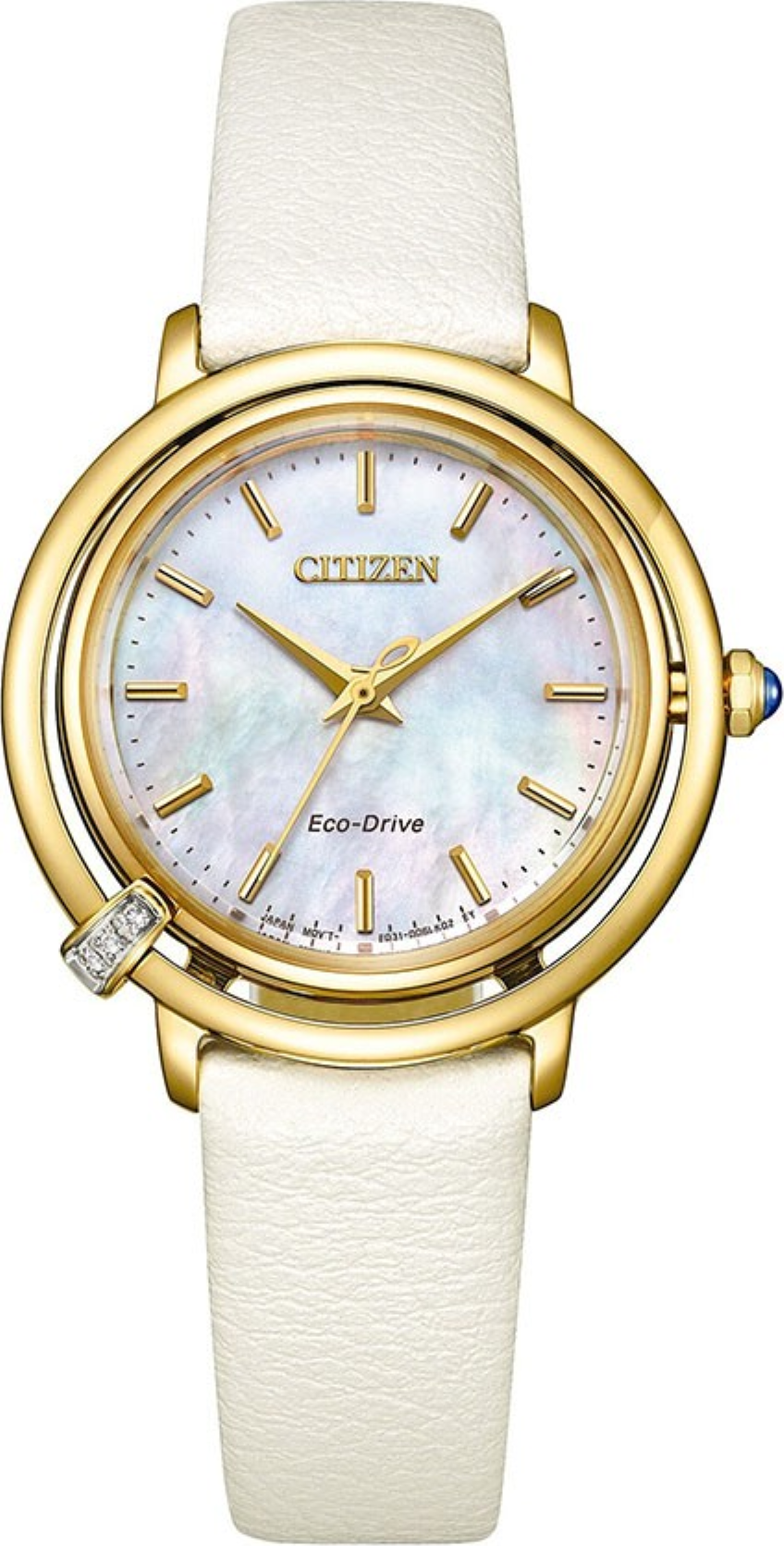 Dámské hodinky Citizen L Eco Drive EM1092-64D jsou elegantního designu a hodí se na každodenní nošení. Korunka těchto hodinek je ozdobena kamínkem kabošon. Elegantnost tohoto modelu umocňuje také umístění 3 diamantů na pouzdře mezi 7-8 hodinou. Součástí balení je také vyměnitelný řemínek z kůže z jablek navíc.