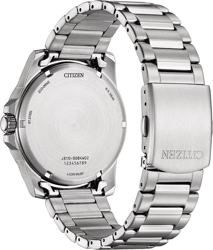 Funkce:Čas, datum, strojek quartz Japan Citizen Eco-drive Caliber J810 - kapacita akumulátoru (rezerva chodu) až 8 měsíců (cca. 240 dní), přesnost chodu = 0 - 0,5 vteřiny denně, indikace potřeby dobití akumulátoru (hodinky dvouvteřinovými intervaly vteřinové ručičky indikují málo energie v akumulátoru a upozorňují tímto majitele/majitelku hodinek na potřebu vystavení hodinek světlu pro dobití), ručičky a indexy jsou opatřeny luminiscenční vrstvou (po krátkém nasvícení je v noci po dlouhou dobu dobře čitelný čas)