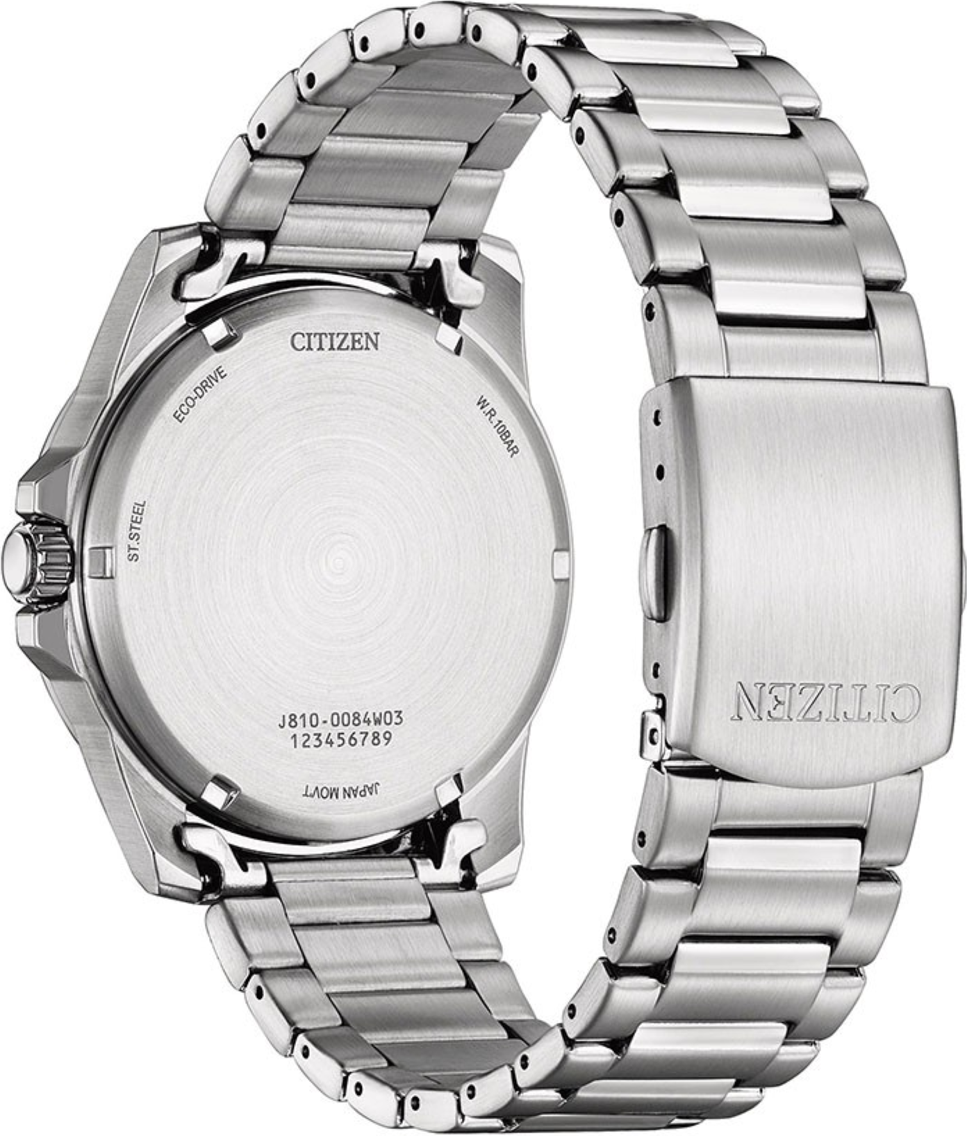 Funkce:Čas, datum, strojek quartz Japan Citizen Eco-drive Caliber J810 - kapacita akumulátoru (rezerva chodu) až 8 měsíců (cca. 240 dní), přesnost chodu = 0 - 0,5 vteřiny denně, indikace potřeby dobití akumulátoru (hodinky dvouvteřinovými intervaly vteřinové ručičky indikují málo energie v akumulátoru a upozorňují tímto majitele/majitelku hodinek na potřebu vystavení hodinek světlu pro dobití), ručičky a indexy jsou opatřeny luminiscenční vrstvou (po krátkém nasvícení je v noci po dlouhou dobu dobře čitelný čas)