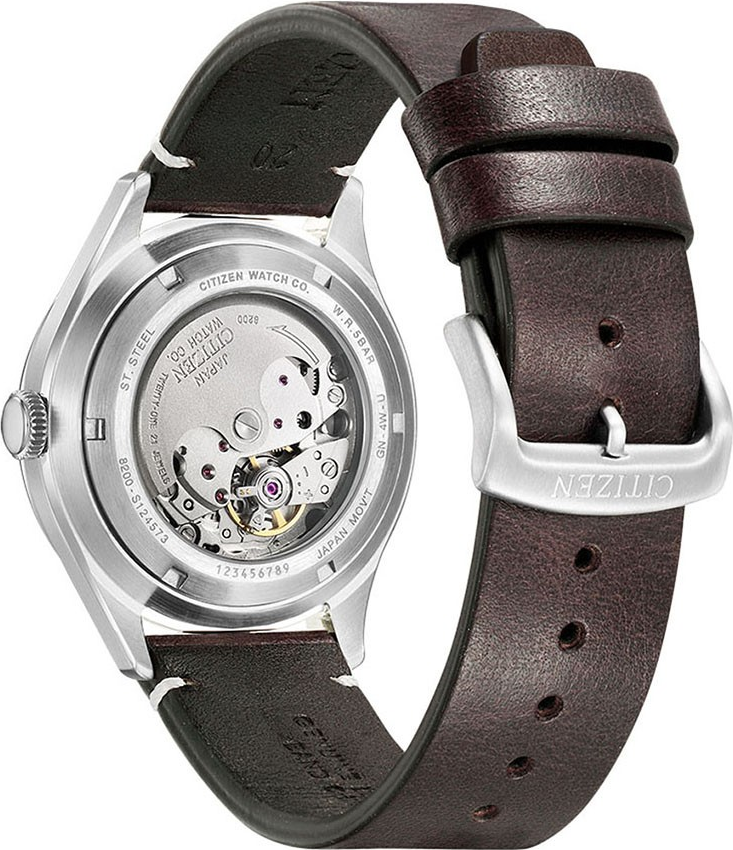 Funkce:Čas, datum, den v týdnu, svítící ručky, automatický strojek s možností ručního nátahu Citizen 8200 (21 kamenů) - rezerva chodu 40 hodin, polokmity setrvačky 21.600/h = přesnost chodu 4 - 7 vteřin denně, náhled na trojek skrz zadní víčko