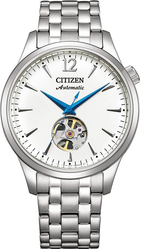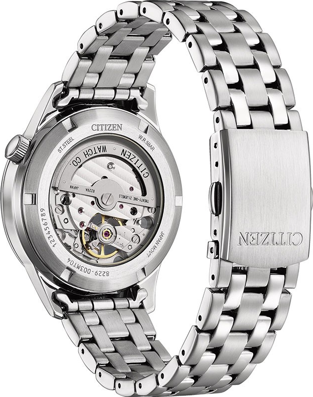 Funkce:Čas, strojek Japan Citizen Miyota 8229 s rezervou chodu 40 hodin (21 kamenů), polokmity setrvačky 21.600/h (3 Hz) = přesnost chodu (diference) 3 - 5 vteřin denně, automatický nátah (hodinky se natahují pohybem ruky) + ruční nátah (hodinky lze natáhnout/dotáhnout dle potřeby i ručně korunkou), náhled na strojek skrz zadní víčko, částečný náhled na strojek skrz přední sklíčko, výrazné modré ručky