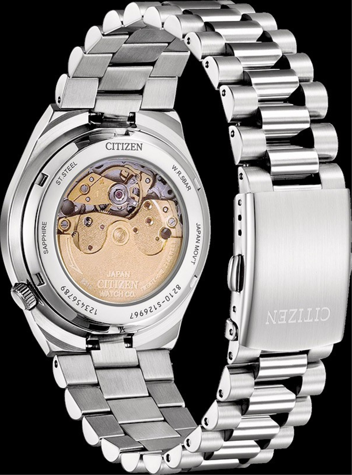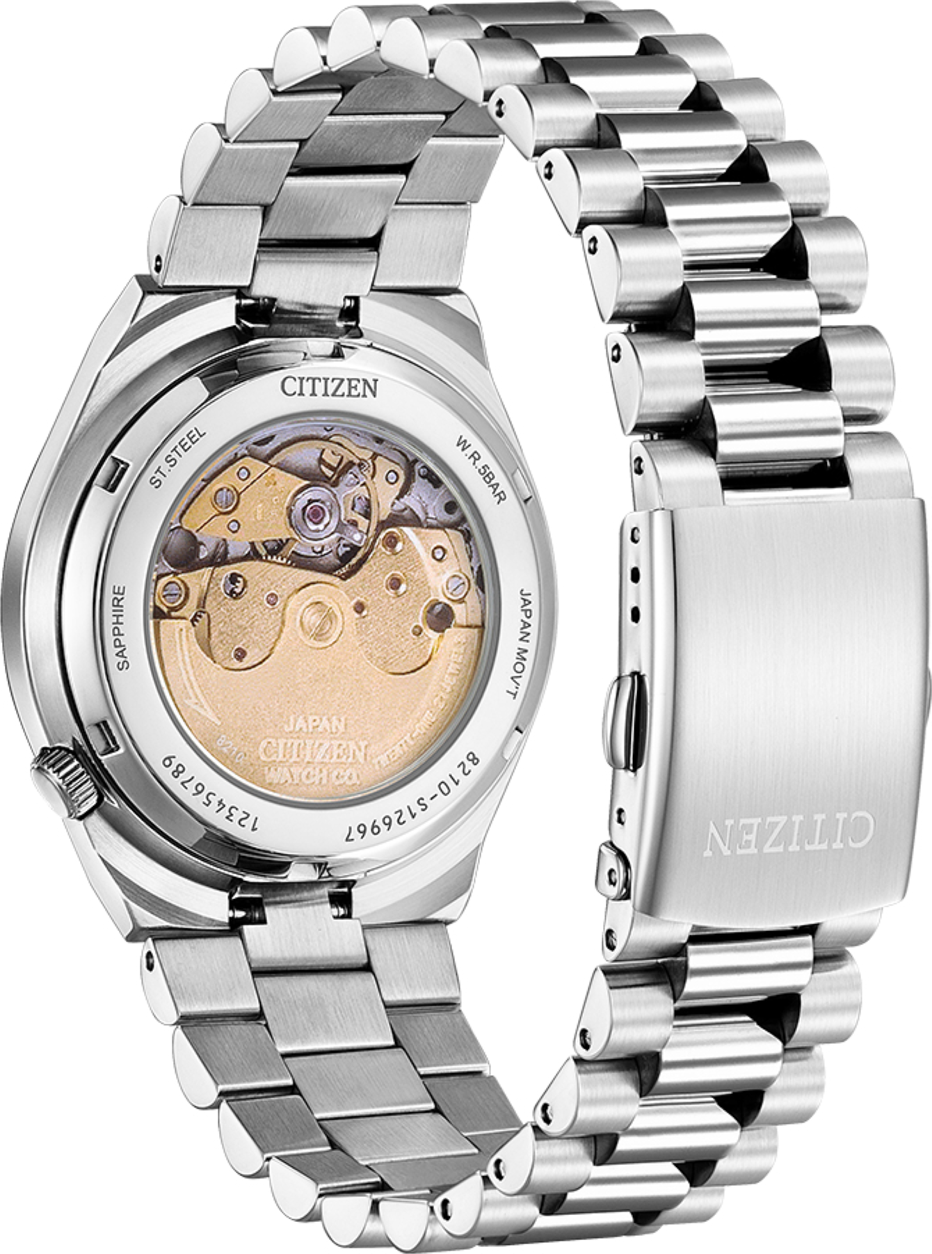 Funkce:Čas, datum s lupou, strojek Japan Citizen Miyota 8210 (21 kamenů), rezerva chodu 40 hodin, polokmity setrvačky 21.600/h (3 Hz) = přesnost chodu (diference) 4 - 7 vteřin denně, automatický nátah (hodinky se natahují pohybem ruky) + ruční nátah (hodinky lze natáhnout/dotáhnout dle potřeby i ručně korunkou), rotor samonátahu disponuje funkcí oboustranného nátahu, náhled na strojek skrz zadní víčko, svítící ručky a indexy