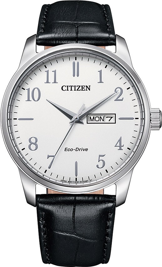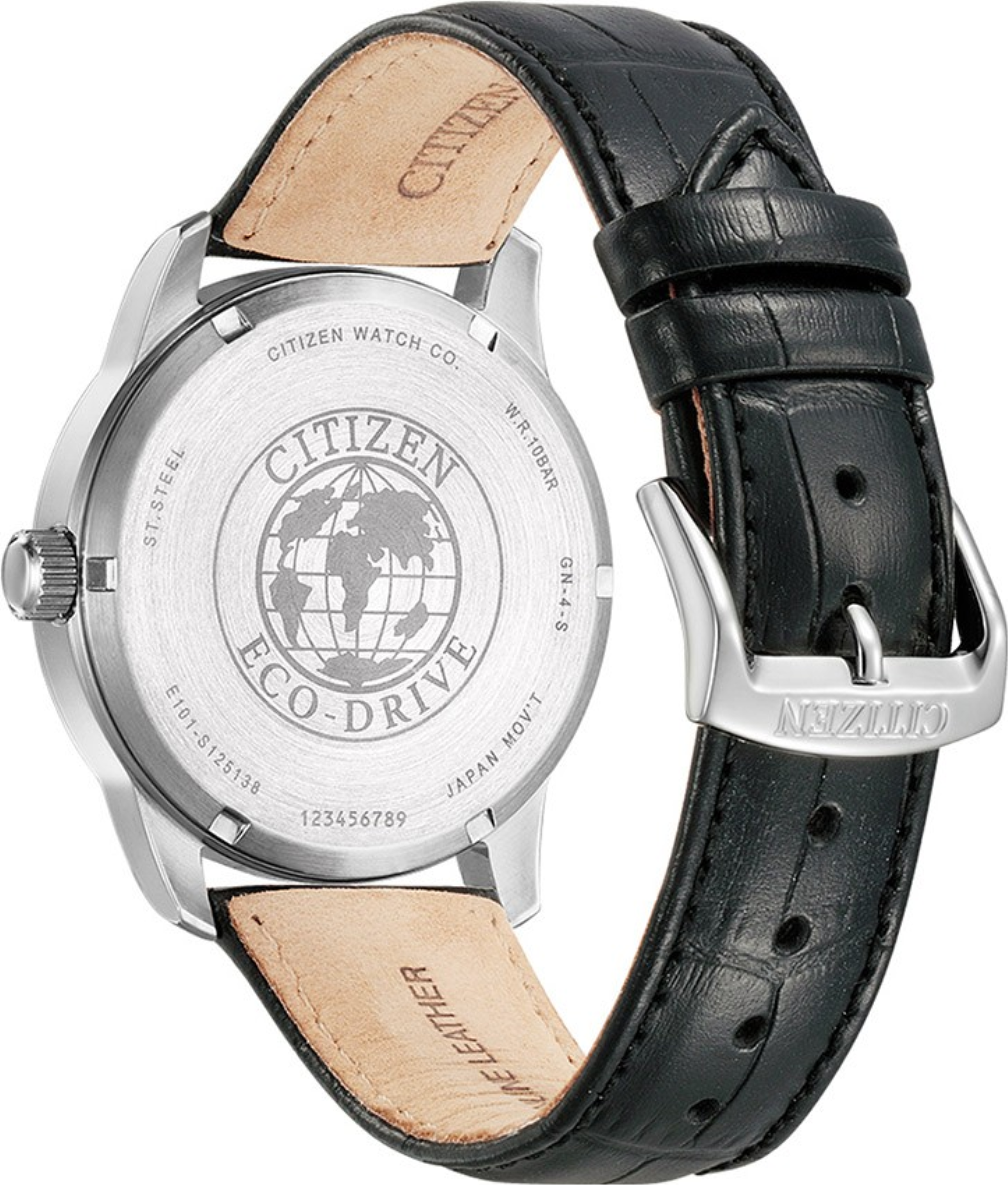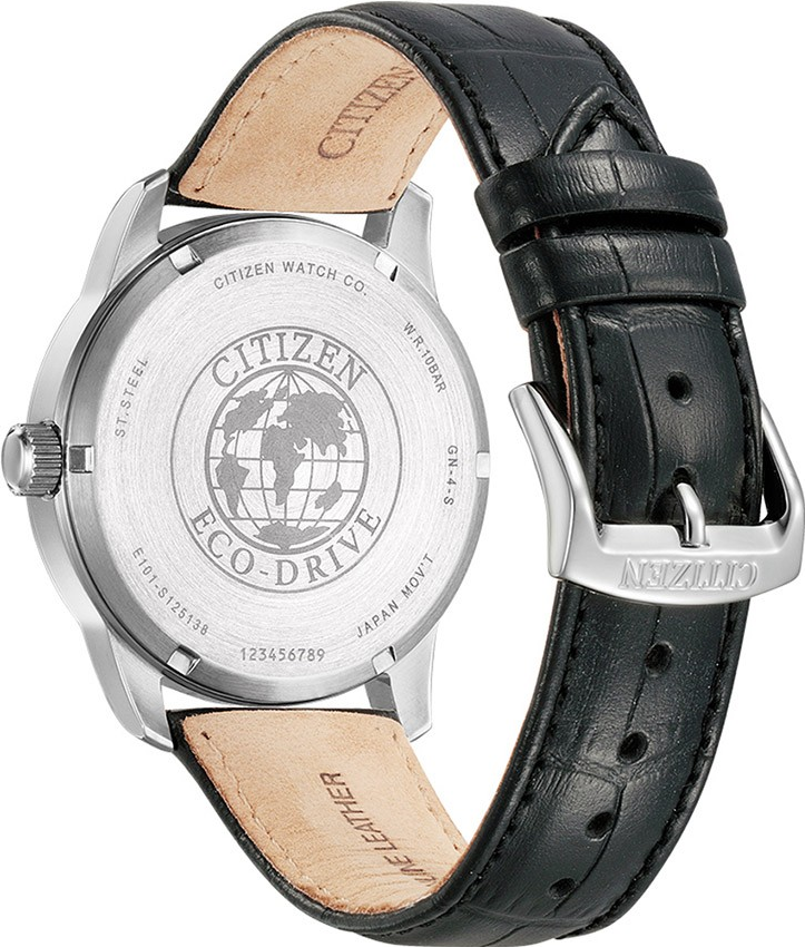 Funkce:Čas, datum, den v týdnu, strojek quartz Japan Citizen Eco-drive Caliber E101 - kapacita akumulátoru (rezerva chodu) až 6 měsíců (cca. 180 dní), přesnost chodu = 0 - 0,5 vteřiny denně, indikace potřeby dobití akumulátoru (hodinky dvouvteřinovými intervaly vteřinové ručičky indikují málo energie v akumulátoru a upozorňují tímto majitele/majitelku hodinek na potřebu vystavení hodinek světlu pro dobití)