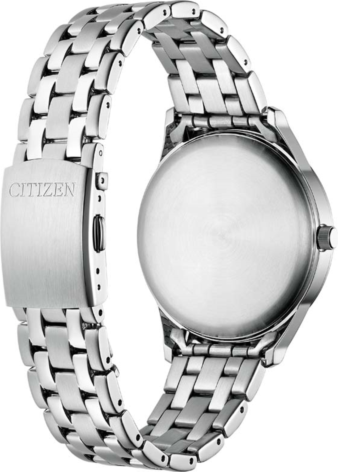 Funkce:Čas, datum, svítící ručky, strojek Citizen Quartz - přesnost chodu 0 - 0,4 vteřiny denně, systém Eco-drive - dobíjení akumulátoru umělým i přírodním světlem (energie pro pohon strojku při úplném nabití akumulátoru 6 - 60 měsíců - titan-lithiový akumulátor)