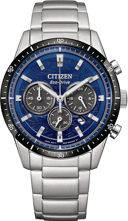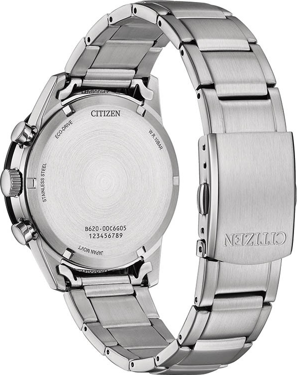 Funkce:Čas, datum, režim 12/24, chronograf = stopky, strojek quartz Japan Citizen Eco-drive Caliber B620-00M = kapacita akumulátoru (rezerva chodu) až 9 měsíců, přesnost chodu = 0 - 0,5 vteřiny denně, indikace potřeby dobití akumulátoru (hodinky dvouvteřinovými intervaly vteřinové ručičky indikují málo energie v akumulátoru a upozorňují tímto majitele/majitelku hodinek na potřebu vystavení hodinek světlu pro dobití), ručičky a indexy jsou opatřeny luminiscenční vrstvou (po krátkém nasvícení je v noci po dlouhou dobu dobře čitelný čas)
