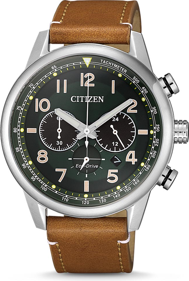 Funkce:Čas, datum, chronograf = stopky, tachymetr = km/h, luminiscenční ručičky a indexy, kontrola stavu akumulátoru, strojek Citizen Quartz - přesnost chodu 0 - 0,4 vteřiny denně, systém Eco-drive - dobíjení akumulátoru umělým i přírodním světlem (energie pro pohon strojku při úplném nabití akumulátoru 6 - 60 měsíců - titan-lithiový akumulátor), šroubovací dýnko