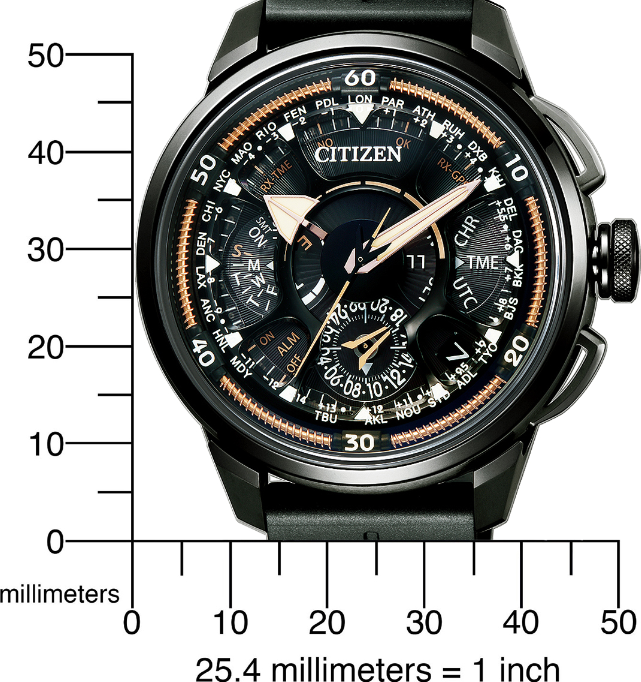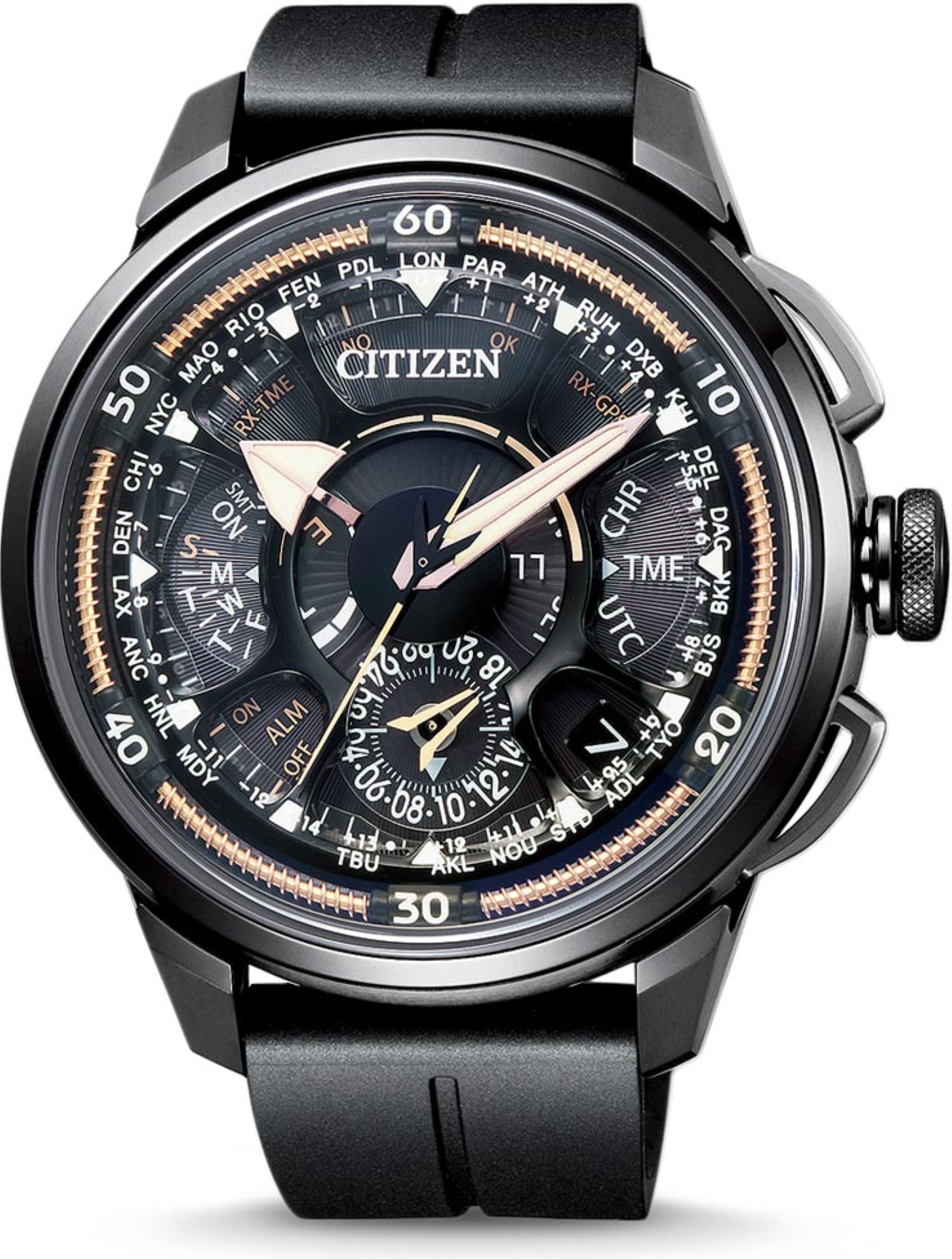 Funkce:čas, datum, Eco-Drive (patent Citizen = dobíjené světlem) - rezerva chodu při plném dobití akumulátoru až 540 dní, 24 hodin displej, 39 časových pásem k dispozici, 5 let výkonová rezerva ve tmě, 540 Tage, antimagnetické, automatická korekce ruce, určování polohy pomocí GPS, výstražná indikace při nedostatečném nabití akumulátoru, Light úroveň indikátoru, světová pásma, věčný kalendář, satelitní systém měření a hlídání přesnosti času, funkce detekce otřesů, stopky: max. 23h, 59min, 1/20 sec., titanové pouzdro je povrchově ztvrzené DLC úpravou (Citizen) pro vetší odolnost proti poškrábání běžným nošením