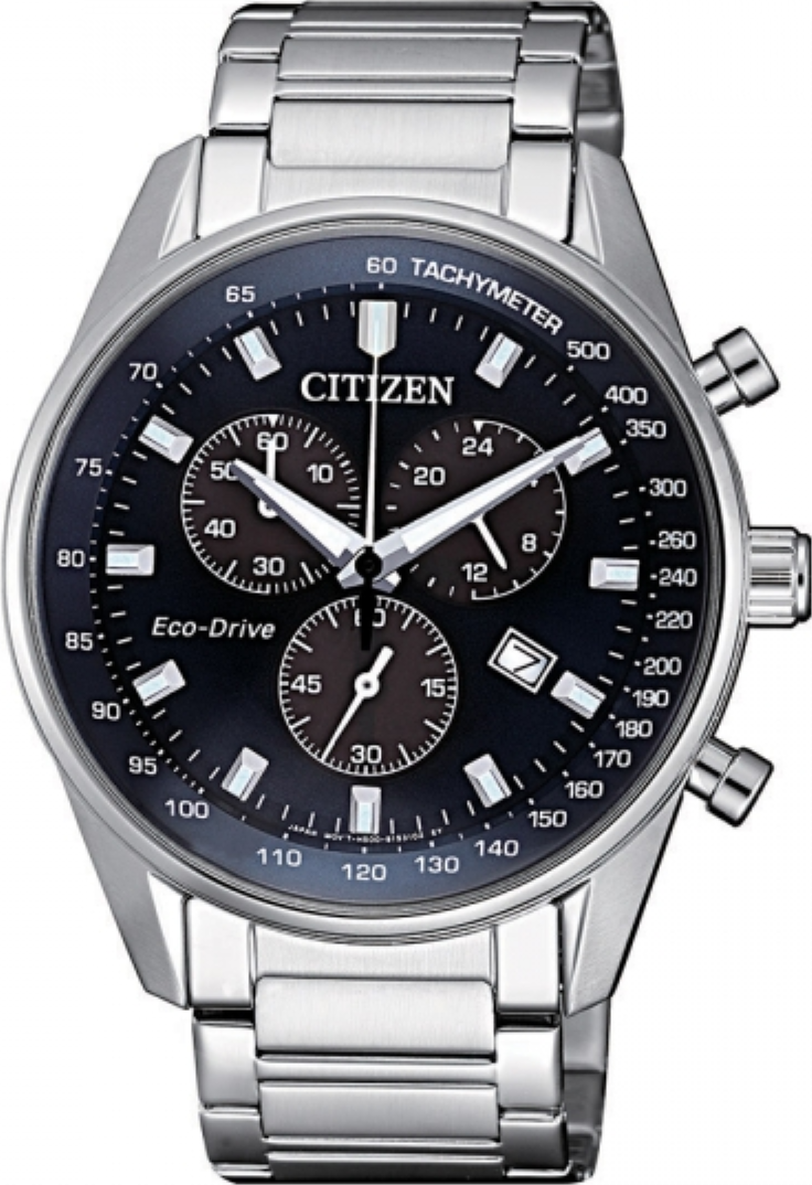 Funkce:Čas, datum, chronograf = stopky, tachymetr = km/h, luminiscenční ručičky a indexy, strojek Citizen Quartz - přesnost chodu 0 - 0,4 vteřiny denně, systém Eco-drive - dobíjení akumulátoru umělým i přírodním světlem (energie pro pohon strojku při úplném nabití akumulátoru 6 - 60 měsíců - titan-lithiový akumulátor)