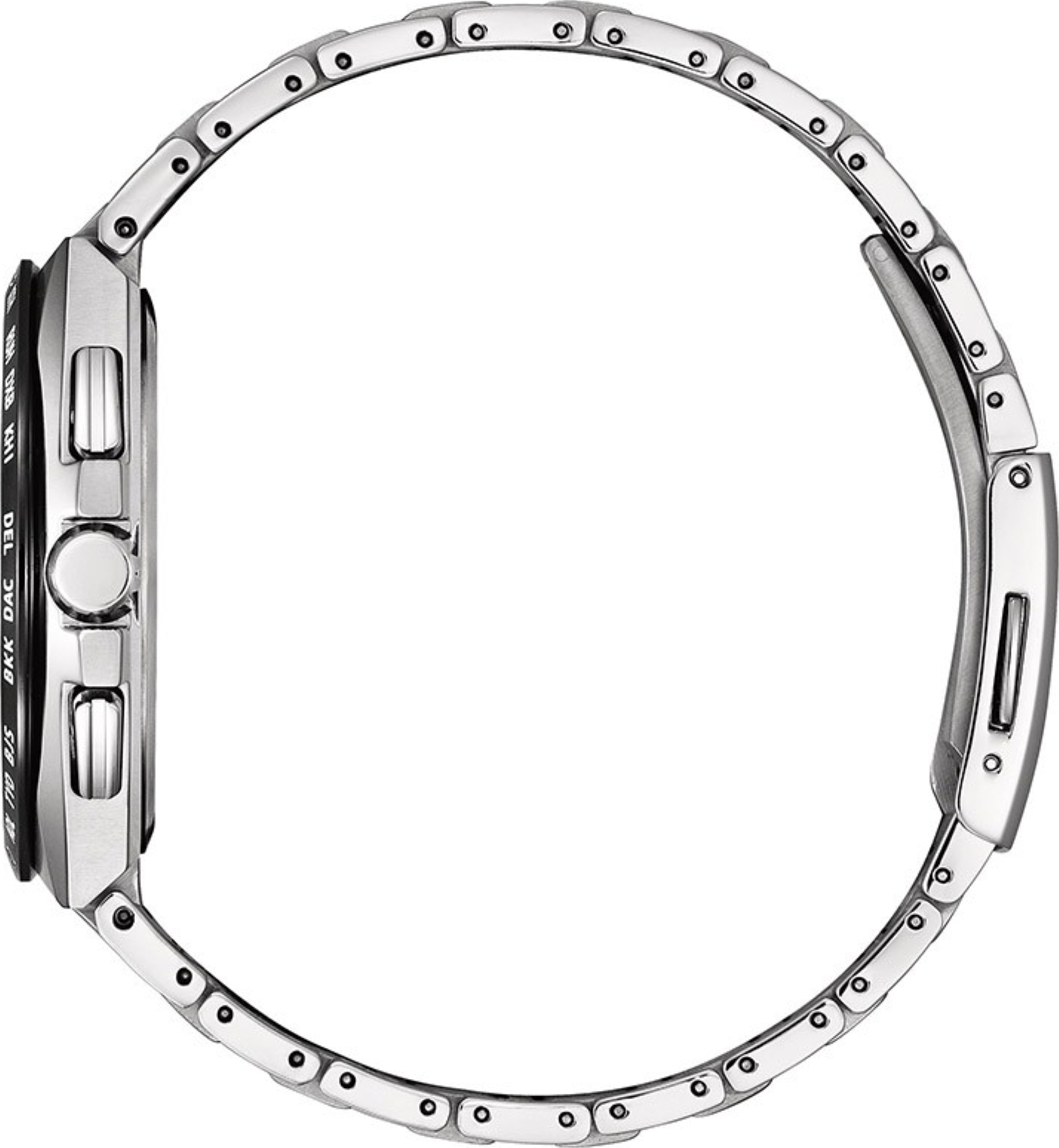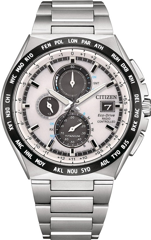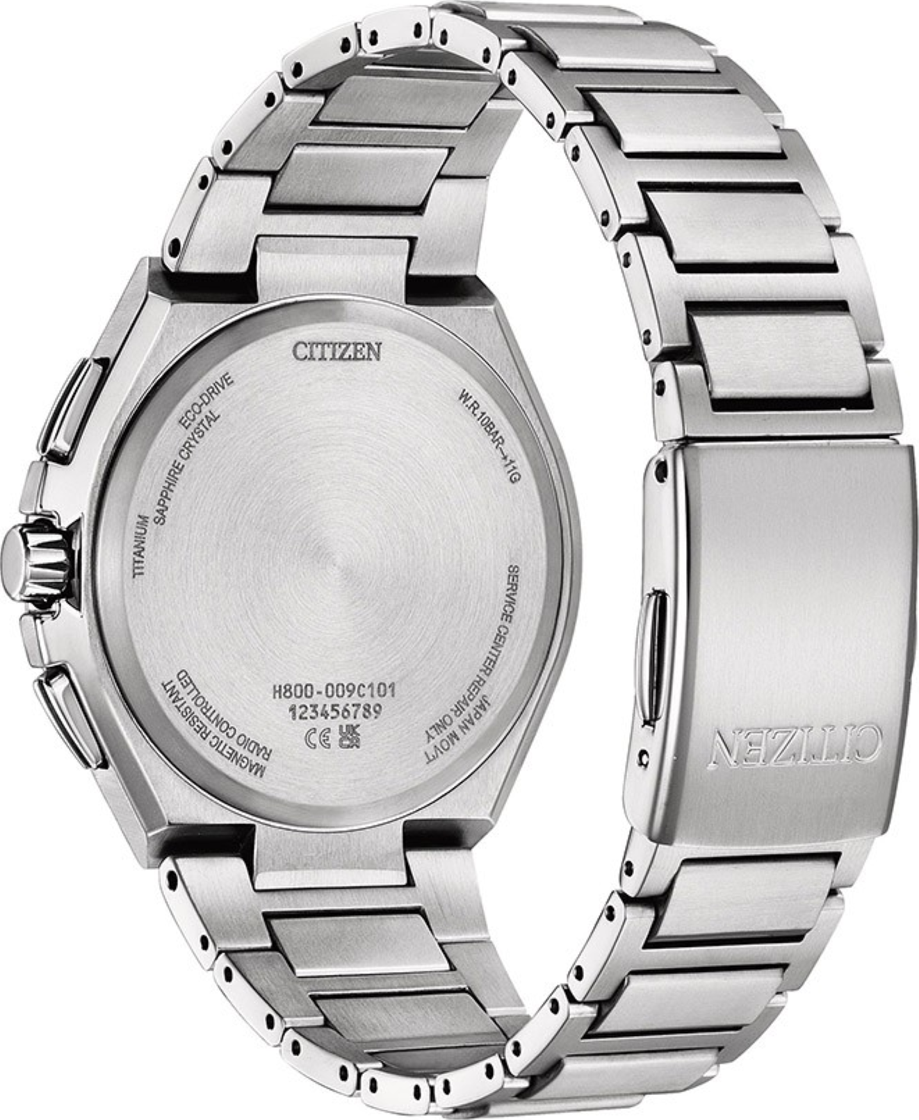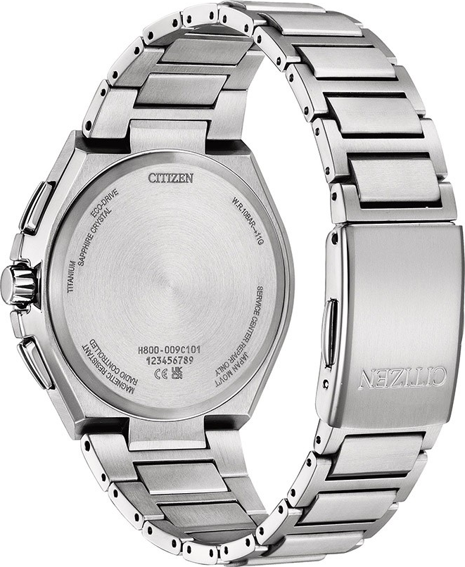 Funkce:Čas, datum, chronograf = stopky (1/20, měřený časový interval: max. 60 mimut), strojek Citizen Caliber H800 Radio Controlled - rádiovým signálem řízený čas (naprosto přesné hodinky), světové časy, režim 12/24, svítící ručky a indexy, systém Eco-drive - dobíjení akumulátoru umělým i přírodním světlem (energie pro pohon strojku při úplném nabití akumulátoru) = rezerva chodu: 10 měsíců, ukazatel rezervy chodu, 24 hod. ukazatel, automatický kalendář, světové časy, časová pásma, letní čas, funkce příjmu rádiového signálu, vysílače rádiového signálu: DCF, WWVB, JJY, BPC, automatická aktivace příjmu signálu, manuální aktivace příjmu signálu, potvrzení stavu příjmu, ukazatel výsledku posledního příjmu, energeticky úsporný režim, výstraha potřeby dobití, ochrana proti přílišnému nabití