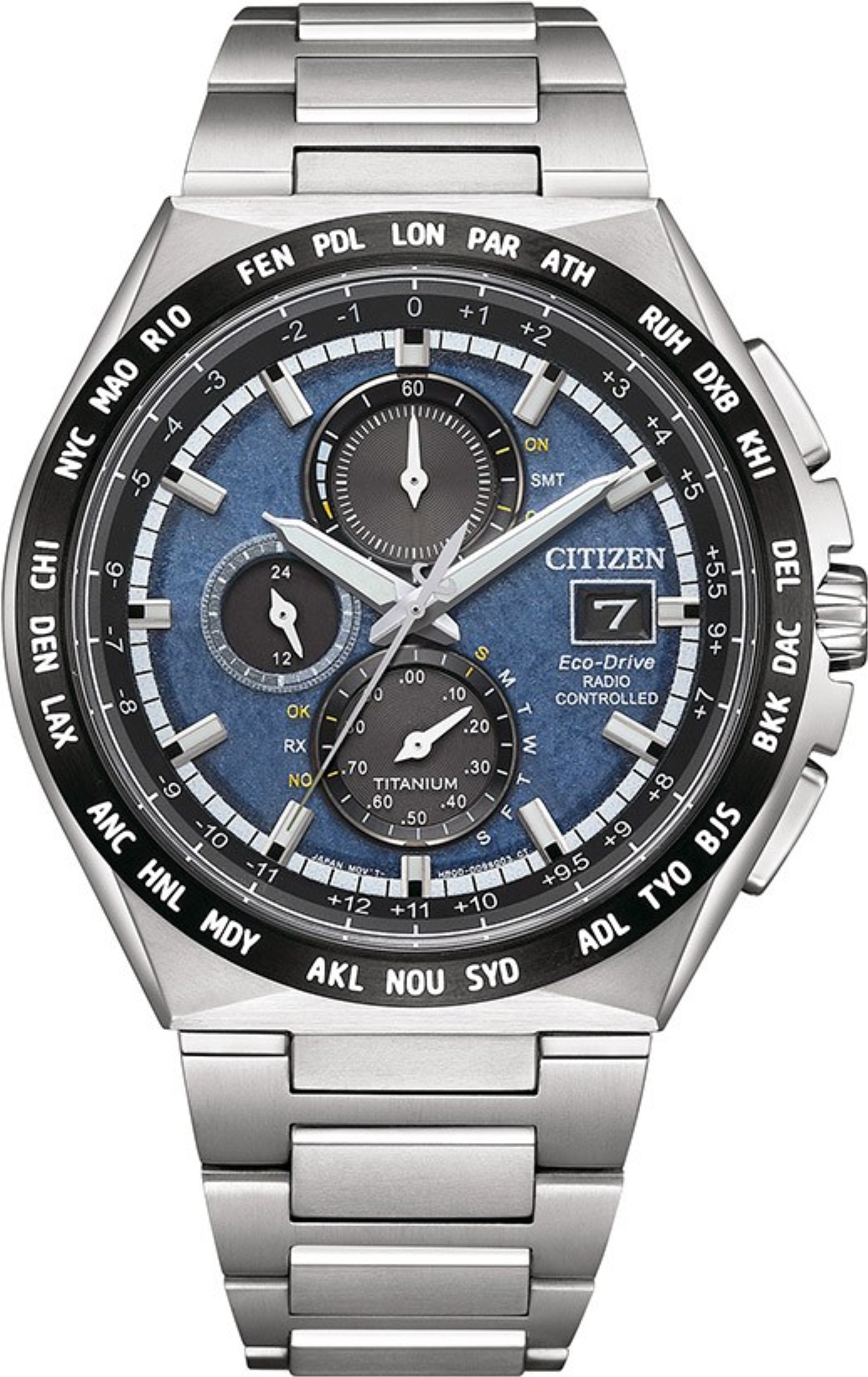 Funkce:Čas, datum, chronograf = stopky (1/20, měřený časový interval: max. 60 mimut), strojek Citizen Caliber H800 Radio Controlled - rádiovým signálem řízený čas (naprosto přesné hodinky), světové časy, režim 12/24, svítící ručky a indexy, systém Eco-drive - dobíjení akumulátoru umělým i přírodním světlem (energie pro pohon strojku při úplném nabití akumulátoru) = rezerva chodu: 10 měsíců, ukazatel rezervy chodu, 24 hod. ukazatel, automatický kalendář, světové časy, časová pásma, letní čas, funkce příjmu rádiového signálu, vysílače rádiového signálu: DCF, WWVB, JJY, BPC, automatická aktivace příjmu signálu, manuální aktivace příjmu signálu, potvrzení stavu příjmu, ukazatel výsledku posledního příjmu, energeticky úsporný režim, výstraha potřeby dobití, ochrana proti přílišnému nabití