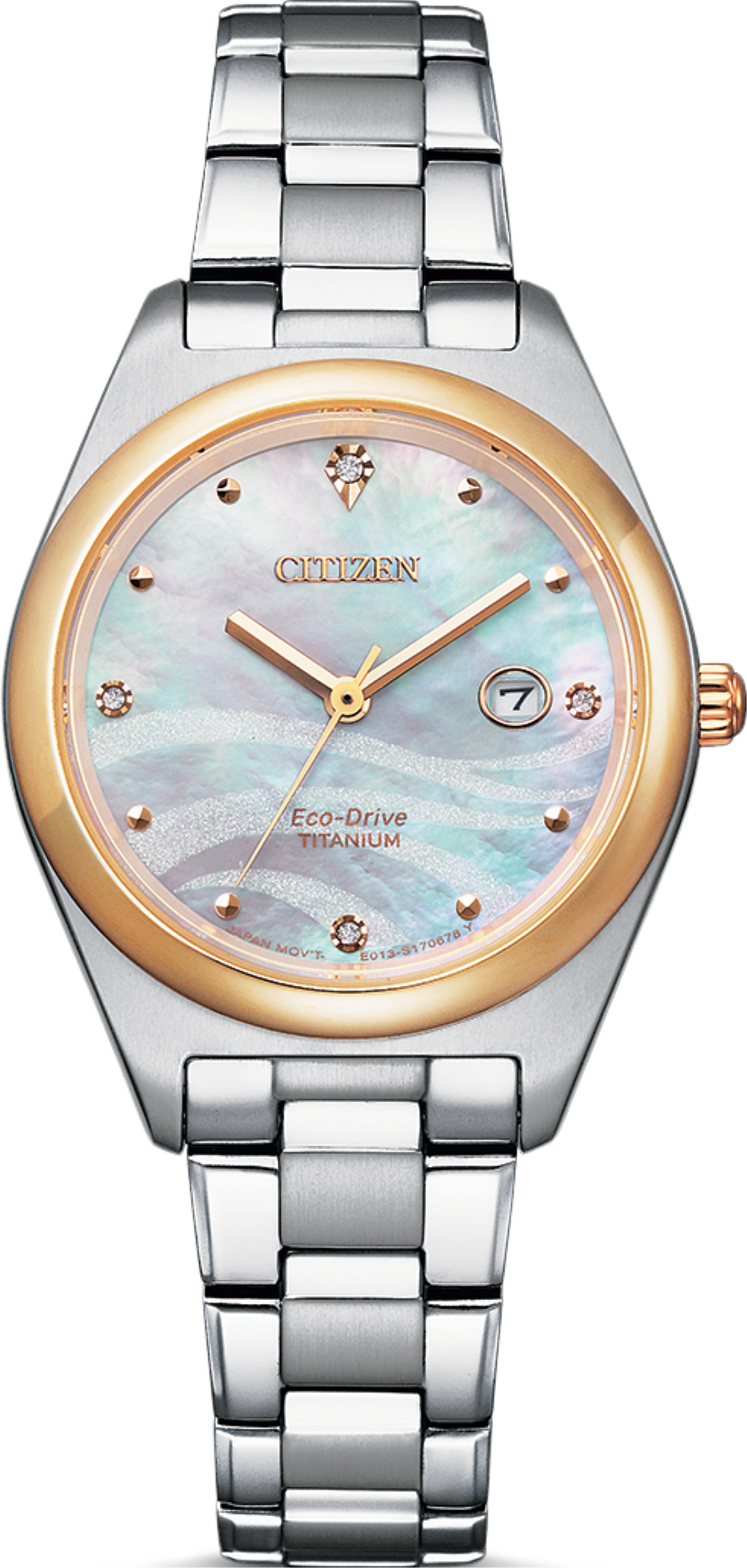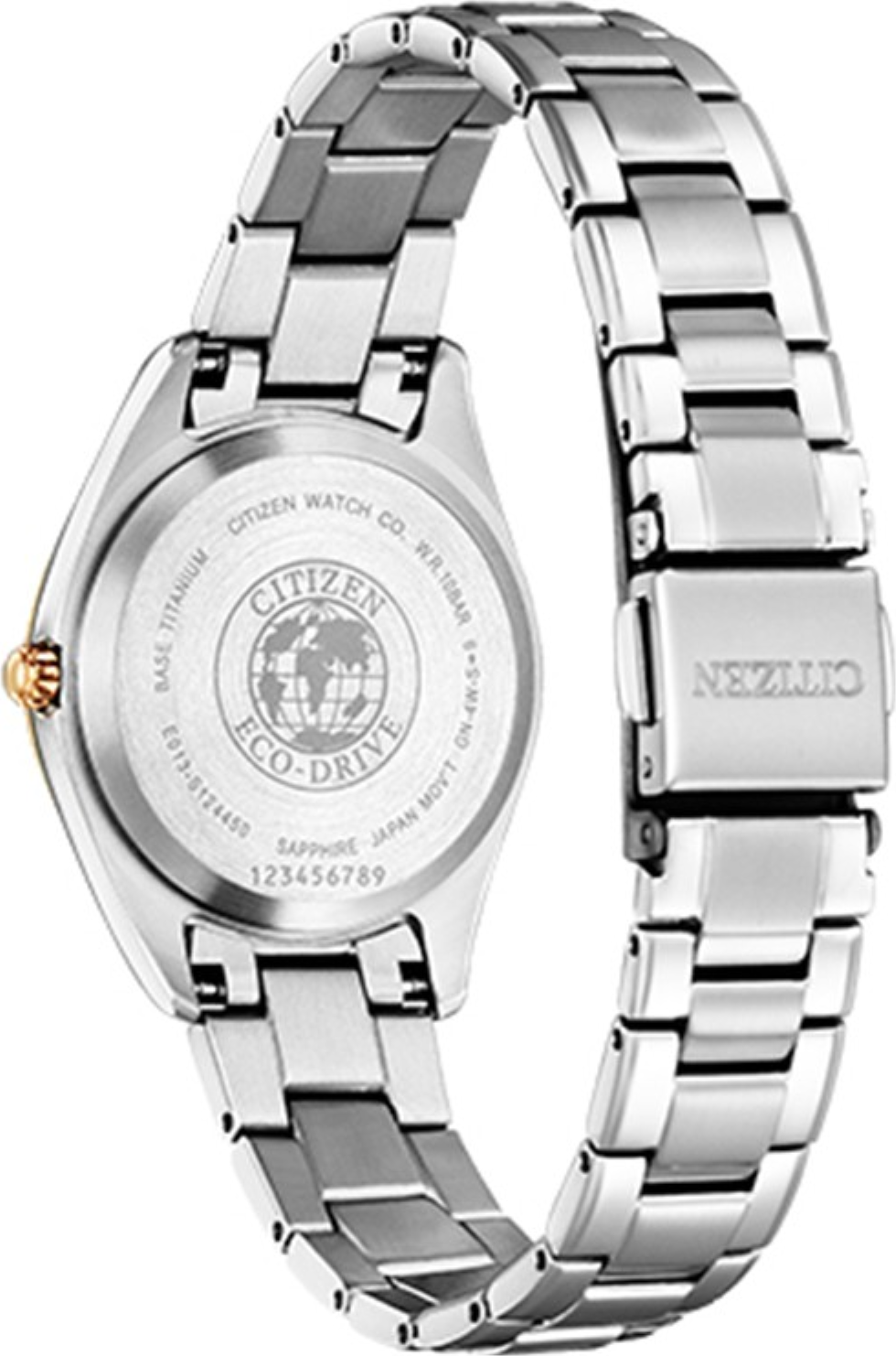 Funkce:Čas, datum, strojek quartz Japan Eco-drive E013 - kapacita akumulátoru (rezerva chodu) až 6 měsíců, přesnost chodu = 0 - 0,5 vteřiny denně, indikace potřeby dobití akumulátoru (hodinky dvouvteřinovými intervaly vteřinové ručičky indikují málo energie v akumulátoru a upozorňují tímto majitele/majitelku hodinek na potřebu vystavení hodinek světlu pro dobití)